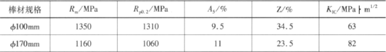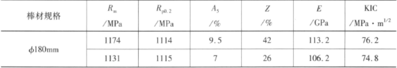 表3-9 Ti1300合金大规格棒材典型力学性能
