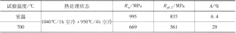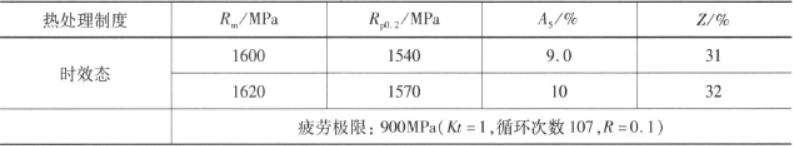 表3-8 Ti1300合金小规格棒材典型力学性能