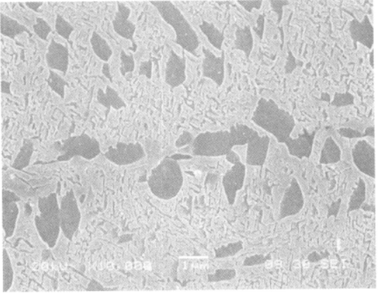 图4-12 Ti44Ni47Nb9铸态组织初生树枝晶(亮)+共晶体(灰)