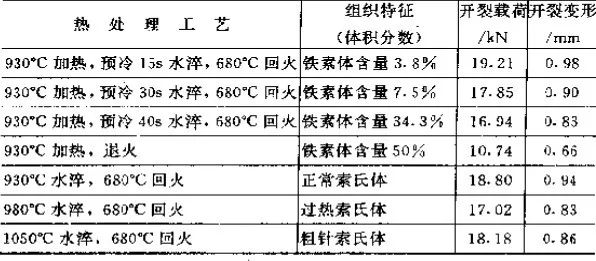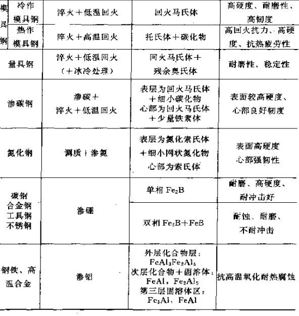 各种热处理工艺处理过的工件,其使用状态下的组织及性能要求如表1所示 。