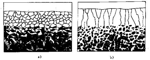 a)粒状晶脱碳 b)柱状晶脱碳