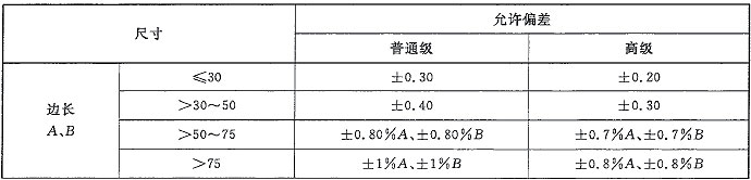 | 边长尺寸 | 边凹凸度(不大于) | |