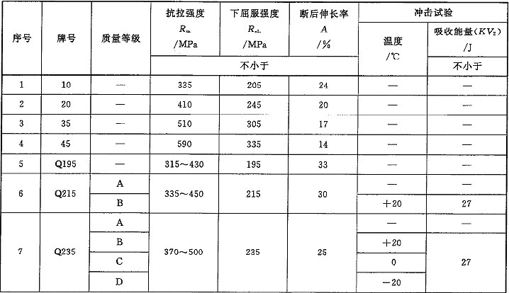 碳素结构钢的牌号为Q195、Q215和Q235,其化学成分(熔炼分析)应符合GB/T 700的规定。