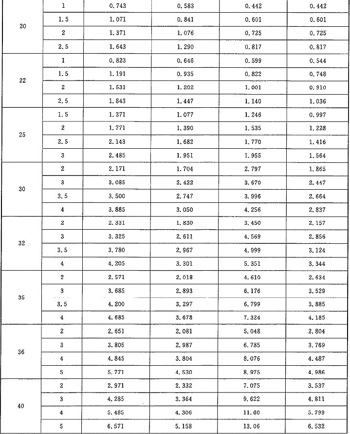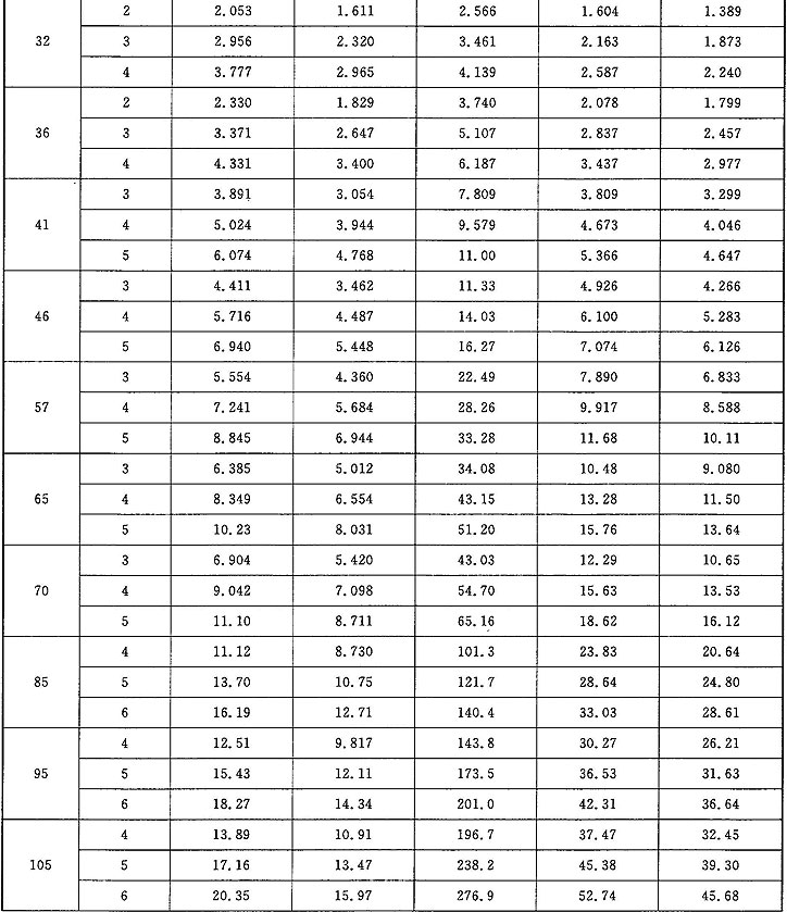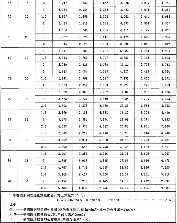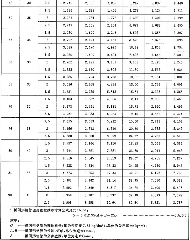 表A.3 椭圆形钢管的尺寸、理论重量和物理参数