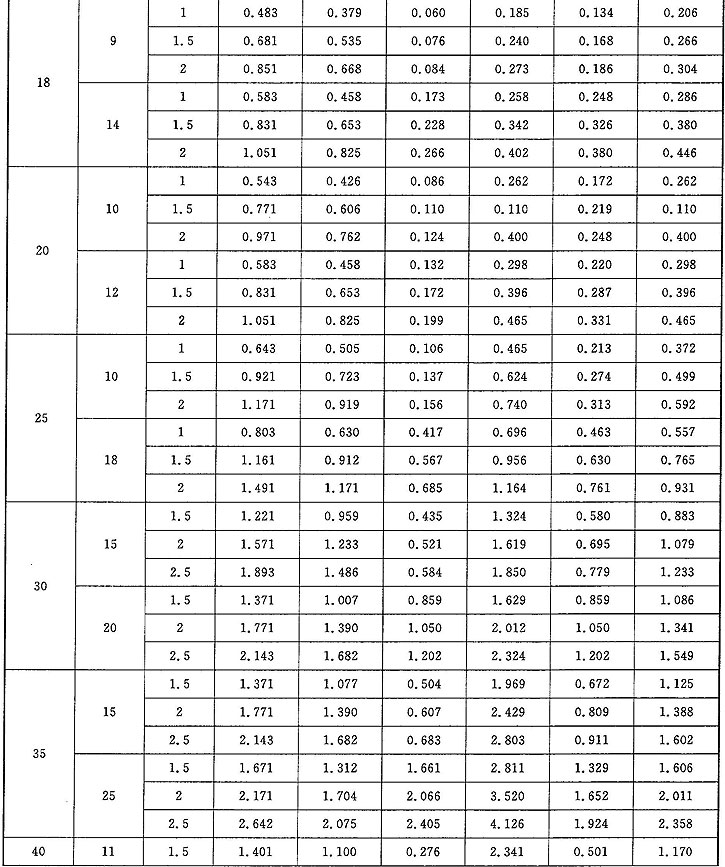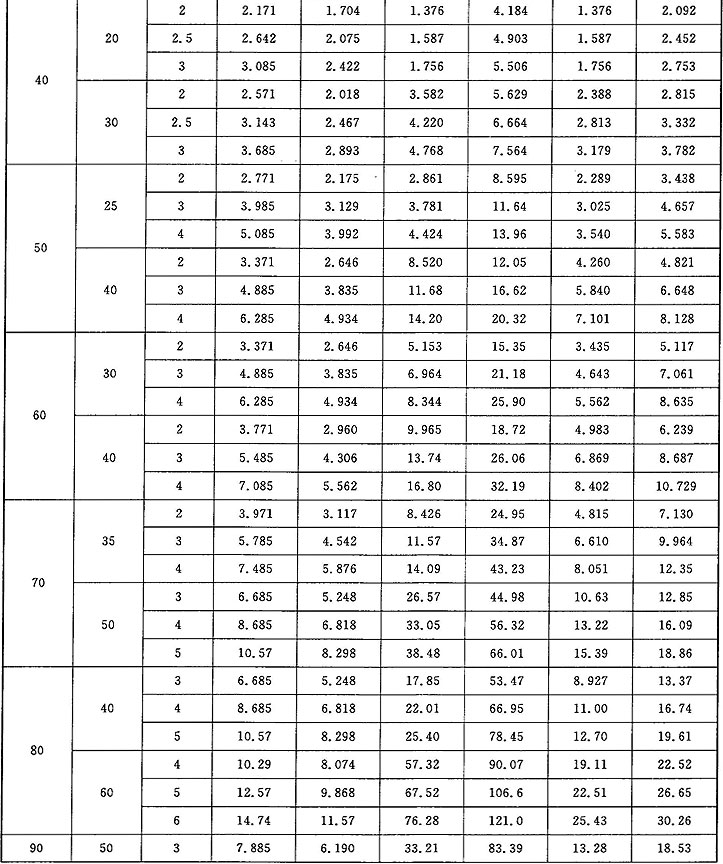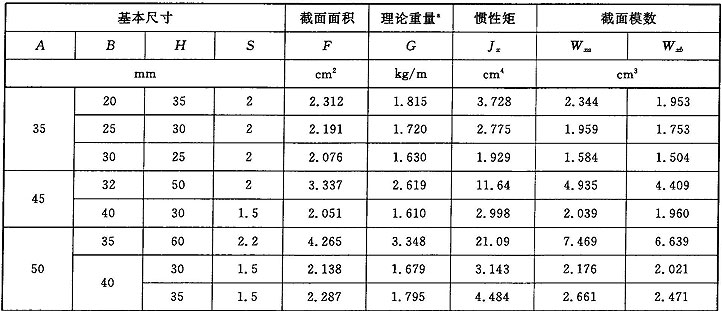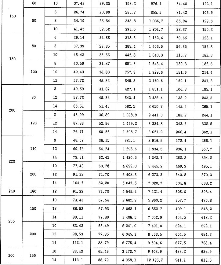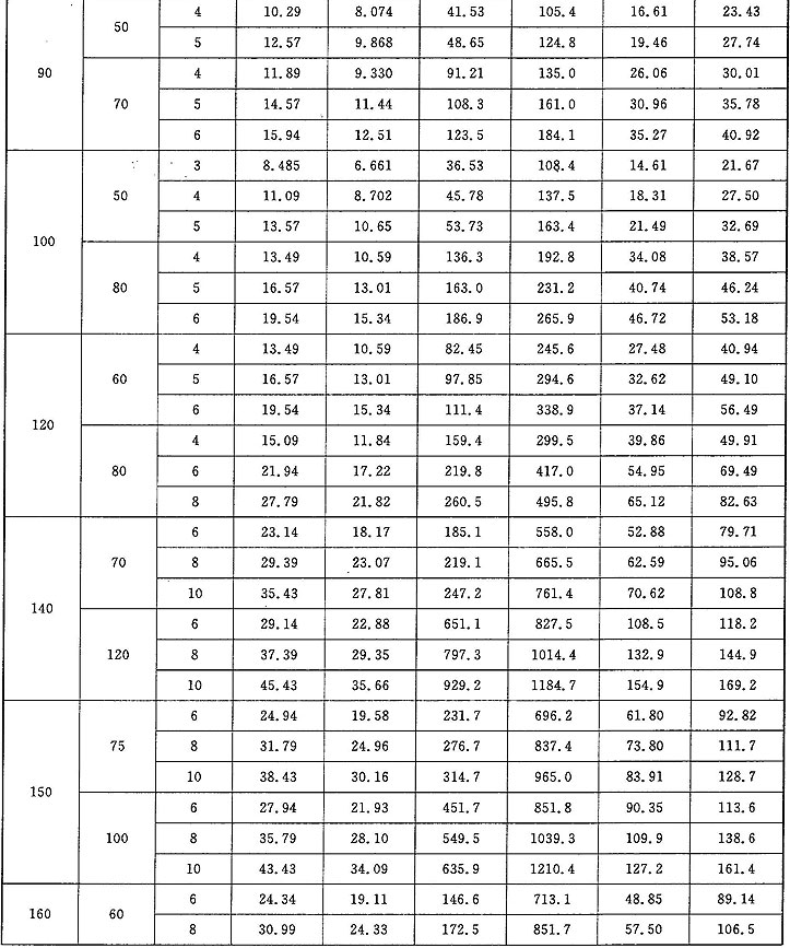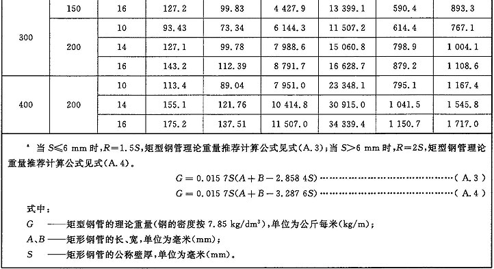 表A.2 矩形钢管的尺寸、理论重量和物理参数
