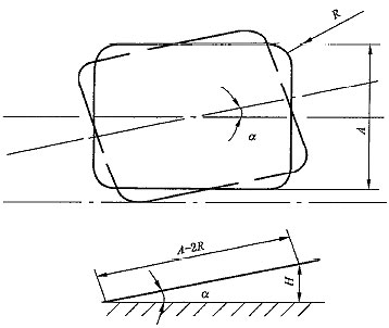 取两块边长大于被测钢管边长的钢板,在标准平板上,使其平行间距为1m并固定,作为测量钢管扭转值的简单量具。测量时,将量具覆于被测钢管表面(量具方向与钢管方向一致),使量具一端紧贴钢管平面,若有扭转,量具另一端必与钢管平面构成一夹角,用塞尺测量此夹角的最大距离H(计算公式见式(B.1)),此值即为该钢管的扭转值(测定示意图见图B.1)。